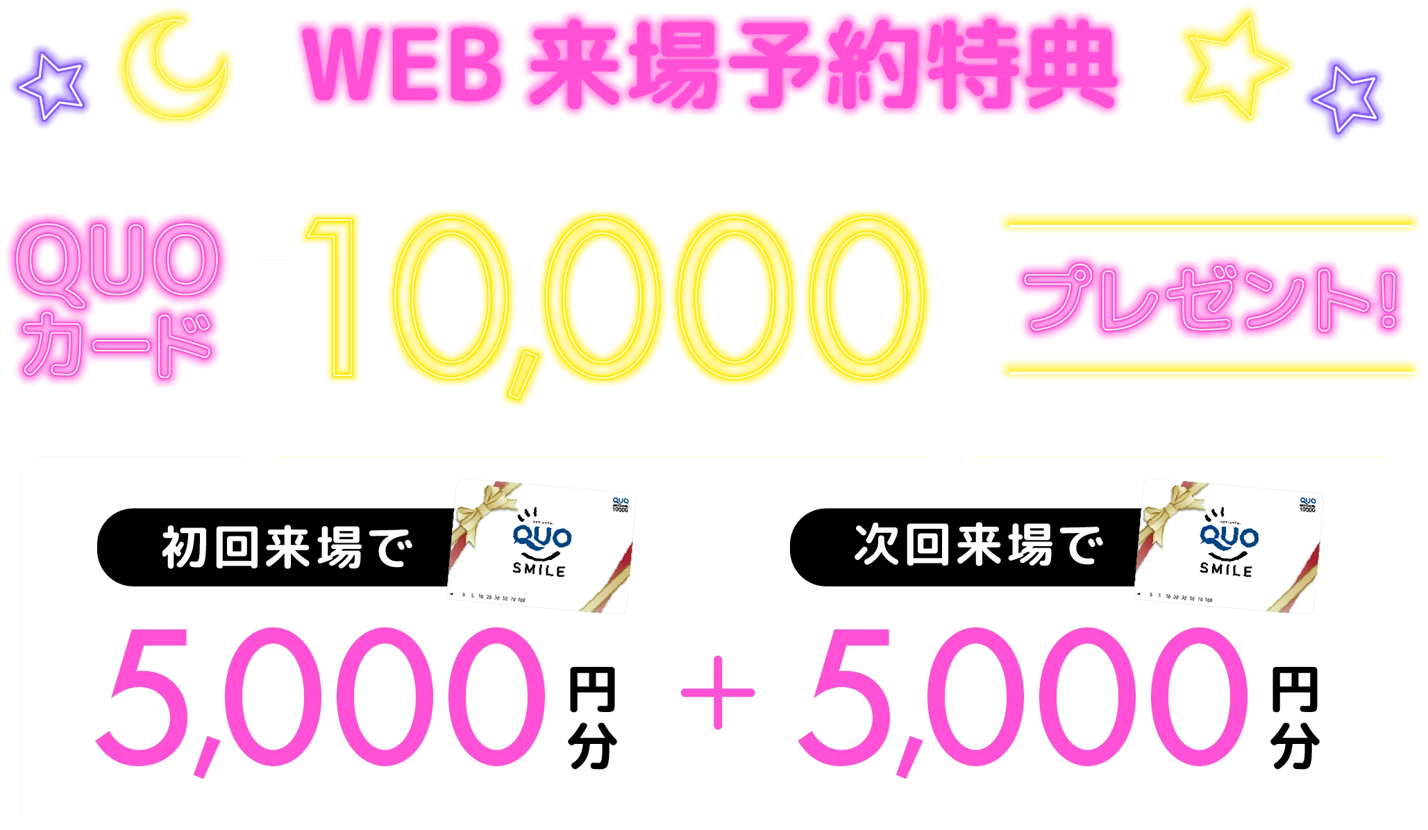 - WEB予約していただくと確認の連絡を取らさせていただきます。確認が取れた時点でWEB予約完了となり、ご来場特典の対象となります。
