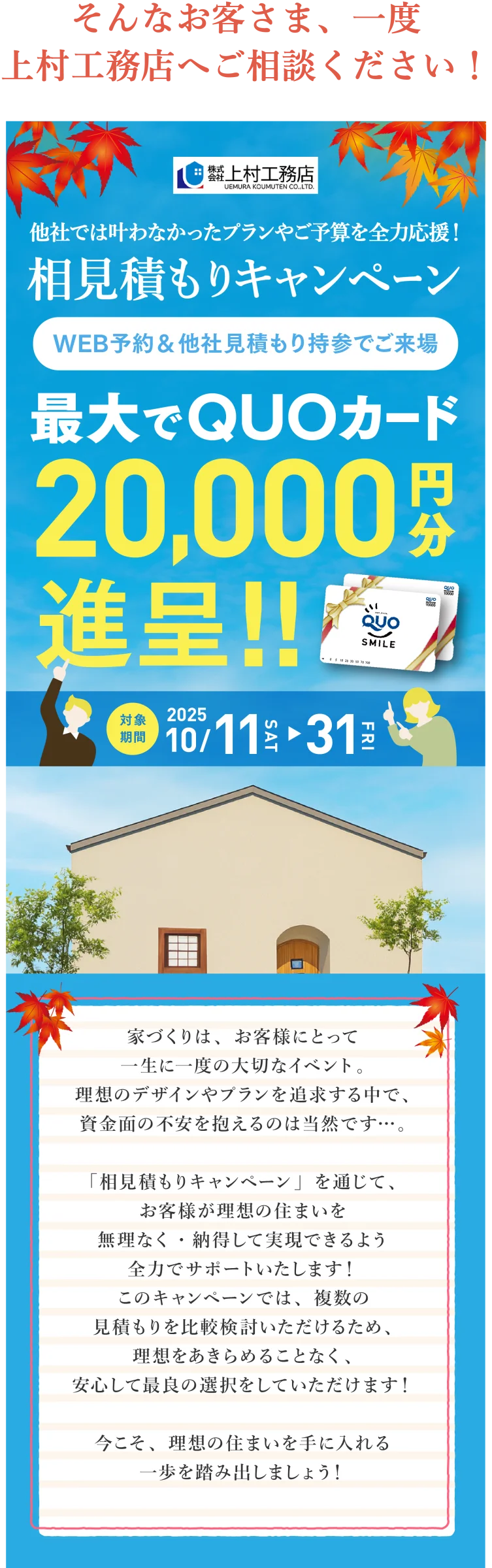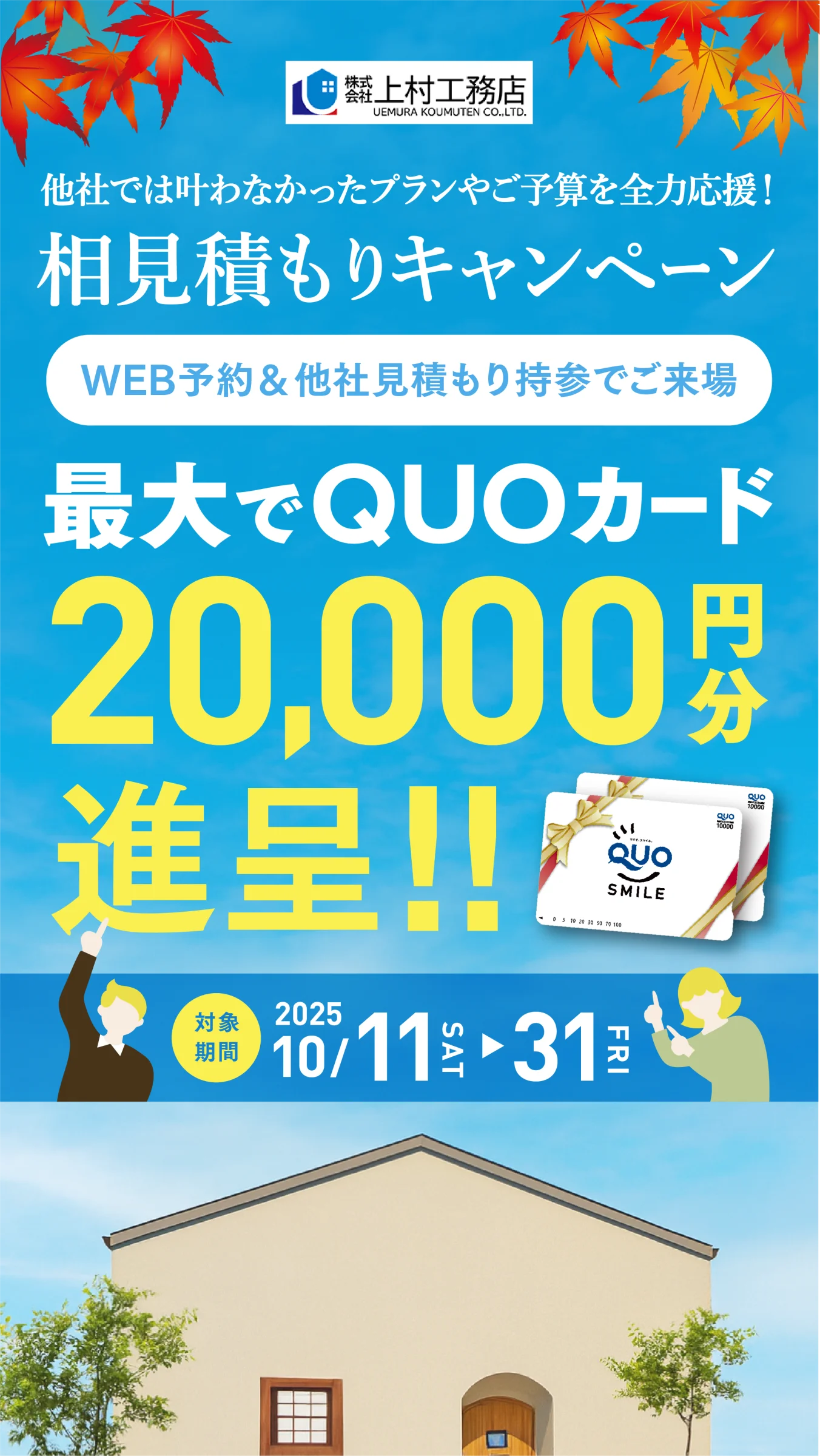 - QUOカードのお渡しは各営業所になります。(イベント会場・分譲モデルハウスでのお渡しはできません)